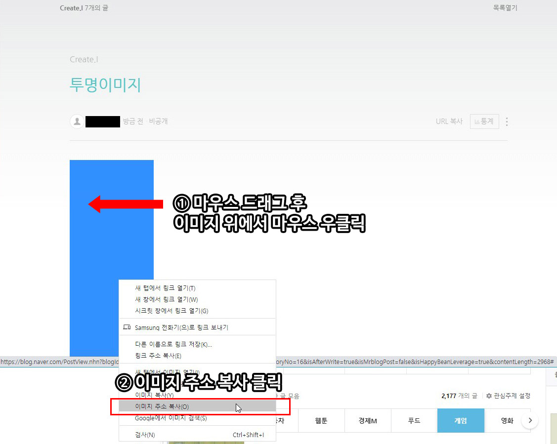 2. 발행된 글을 확인해 이미지 주소를 복사해 놓습니다.